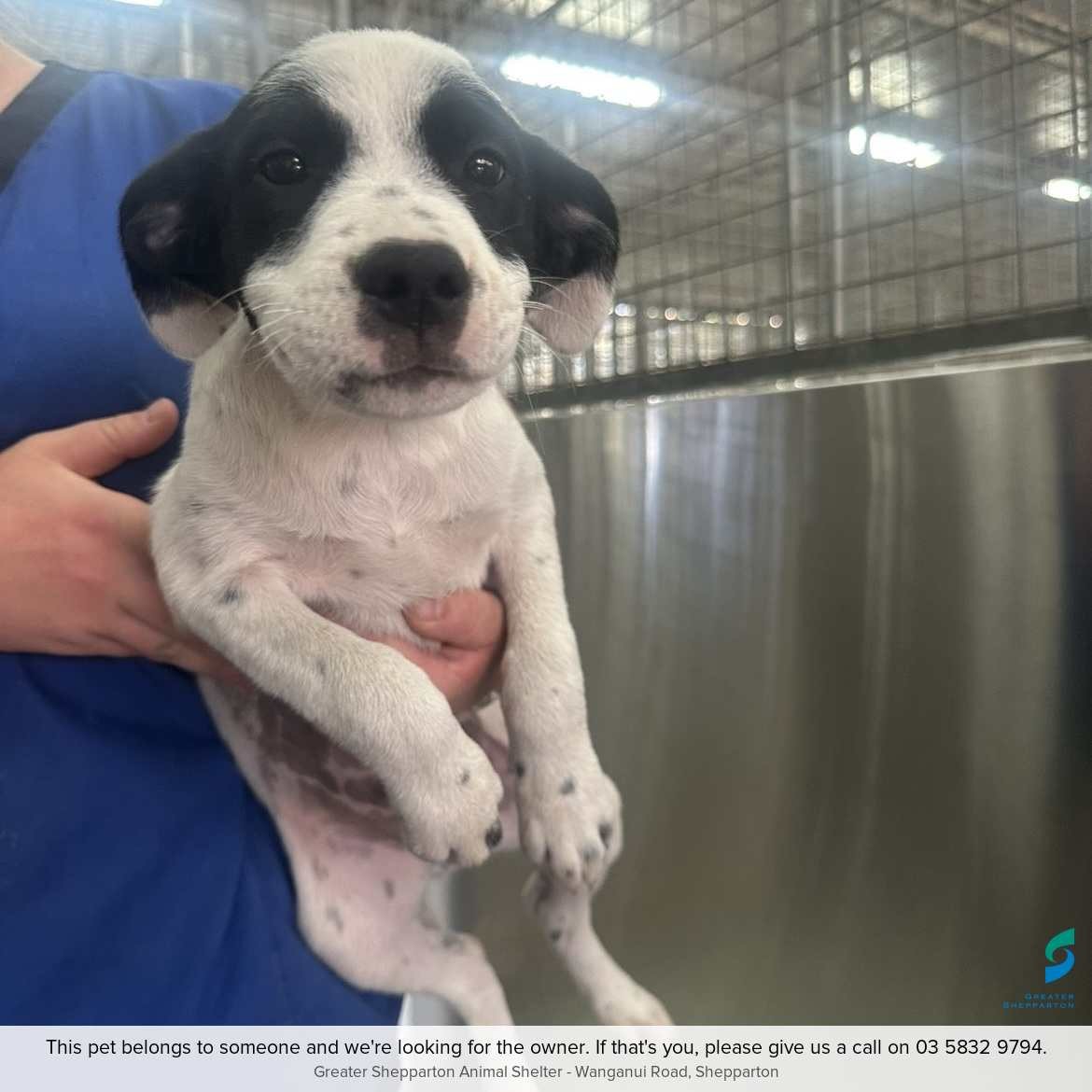Please contact the Shepparton Animal Shelter on 03 5832 9794 to find out more or to claim this animal. You can also visit the Animal Shelter at 125 Wanganui Road, Shepparton, by appointment.
