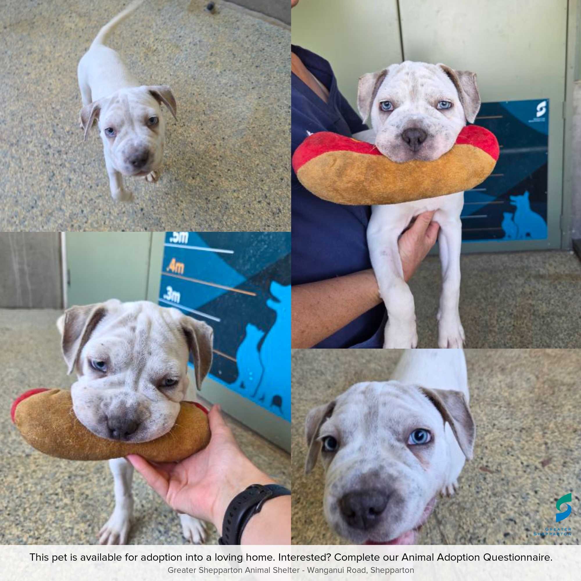Sadie is a 12-week-old white and brown American Bulldog x puppy with the most beautiful gentle nature and so much love to give ๐ This sweet girl is full of puppy innocence, wiggly greetings and the softest snuggles.