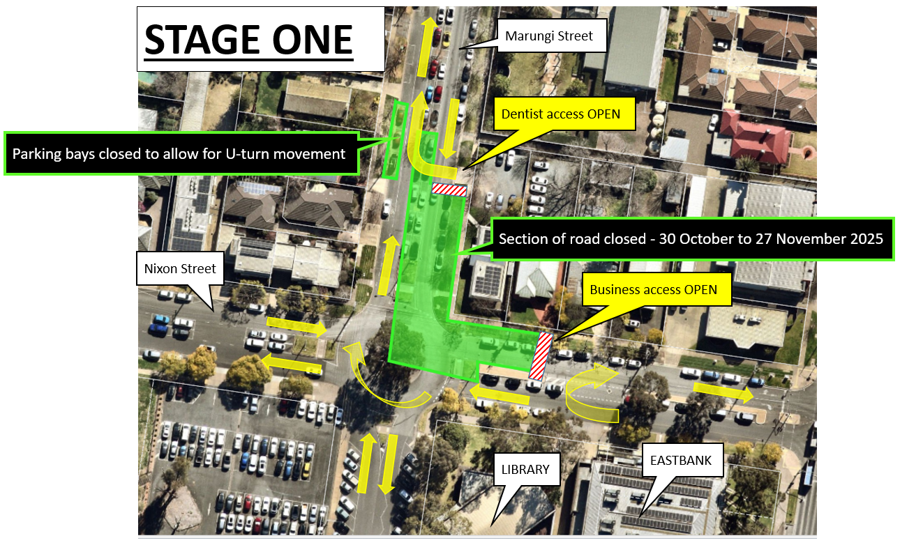 - STAGE 1: 30 October to 27 November 2025 Eastbound closure departing Nixon/Marungi Street roundabout and southbound closure of Marungi Street at Nixon/Marungi Street roundabout.