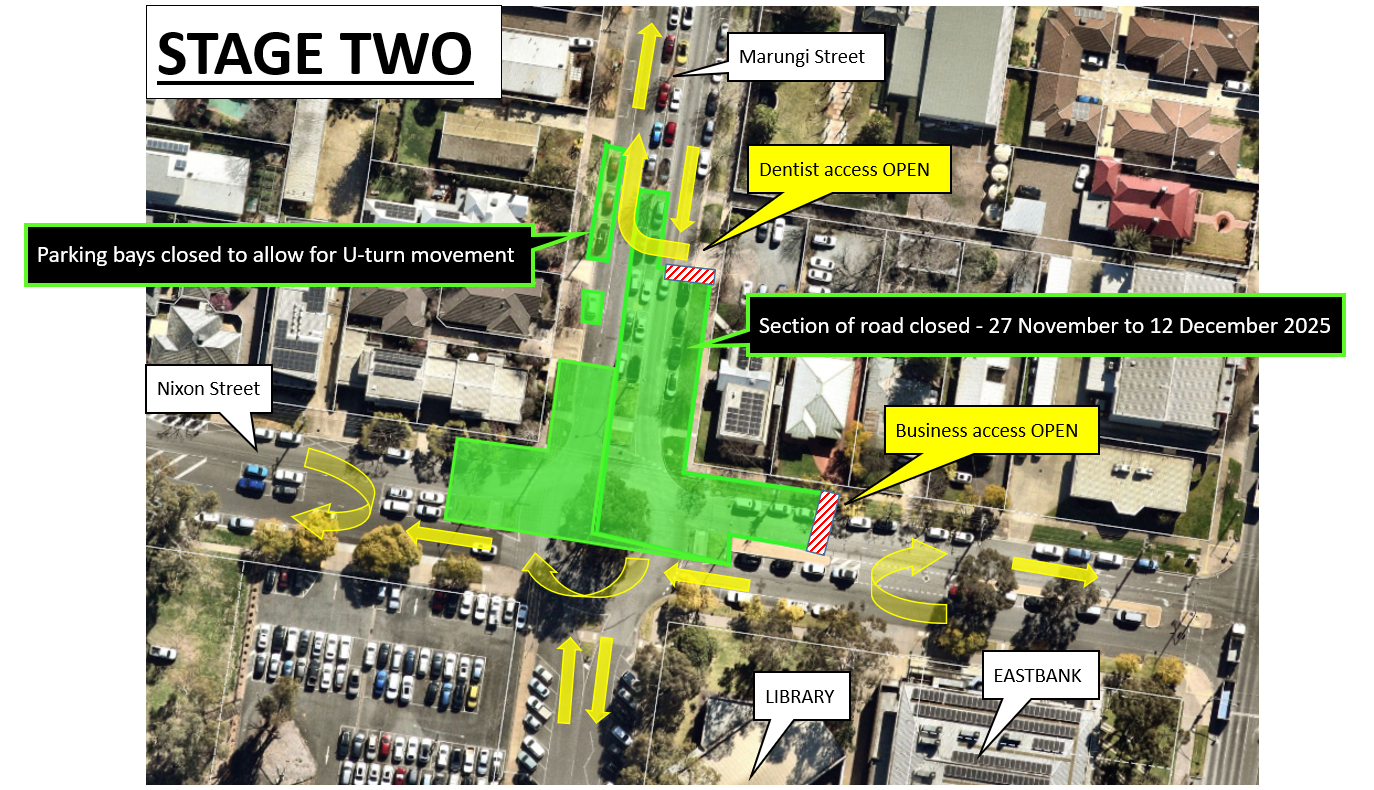 ALL ROAD CLOSURES WILL RE-OPEN DURING THIS TIME FRAME - STAGE 4: 12 January until works completed early March 2026 (TBC)Sections of northbound closure along Marungi Street – moving progression