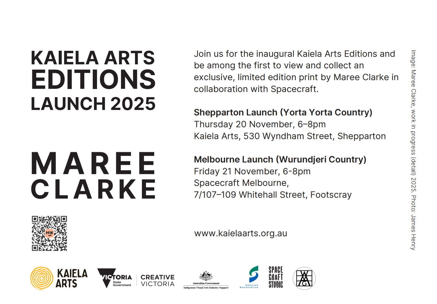Join us to celebrate this landmark release of the inaugural Kaiela Arts Editions and be the first to purchase a print at one of our free launch events.