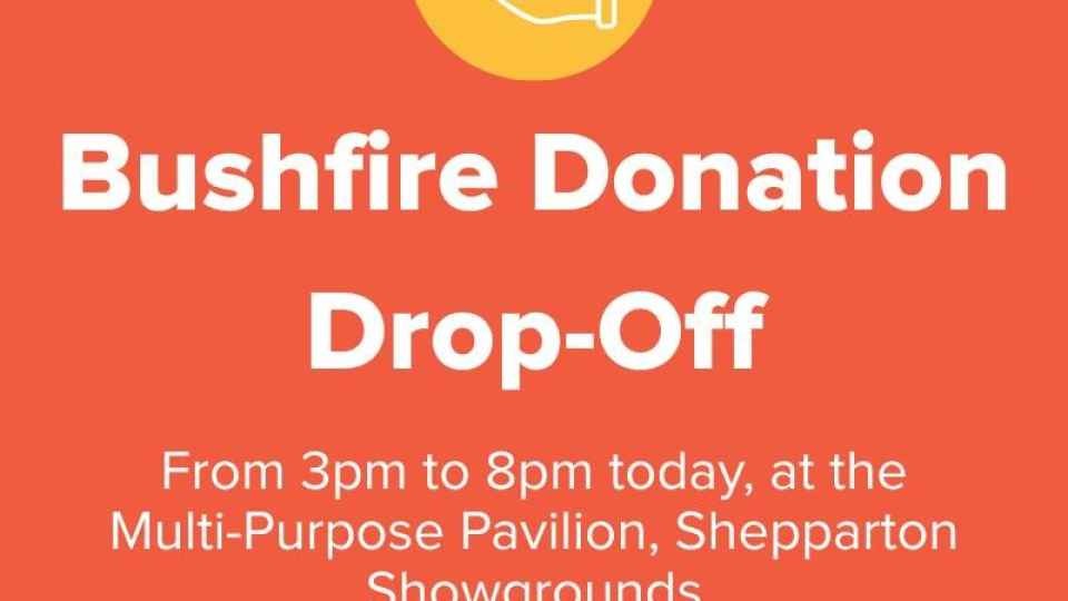 A donation drop-off point will be open today only, from 3pm to 8pm at the Multi-Purpose Pavilion, Shepparton Showgrounds. Read more